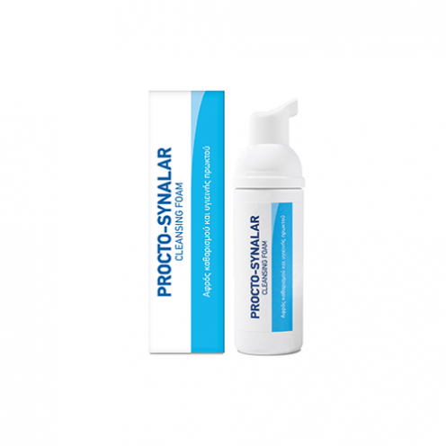 Το PROCTO-SYNALAR cleansing foam είναι ένας απαλός αφρός καθαρισμού με καταπραϋντικές ιδιότητες, ειδικά σχεδιασμένος για την καθημερινή υγιεινή της περιπρωκτικής περιοχής και για την περίπτωση ενοχλήσεων που προκαλούνται από αιμορροΐδες.