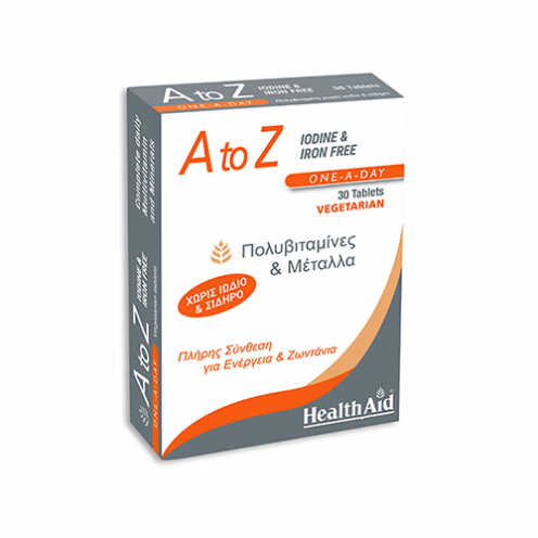 Το A to Z Iodine & Iron Free της HealthAid αποτελεί ιδανική πολυβιταμίνη για άτομα που δεν επιτρέπεται να λαμβάνουν ιώδιο ή σίδηρο, (IODINE & IRON FREE) όπως σε περιπτώσεις διαταραχών θυρεοειδούς, αιμοσιδήρωσης (υπερφόρτωση σιδήρου που μπορεί να επηρεάσει ζωτικά όργανα, όπως καρδιά και ήπαρ), καθώς και για όσους έχουν ιστορικό γαστρεντερικών προβλημάτων ή υπερευαισθησία στη λήψη σιδήρου, που συχνά προκαλεί δυσκοιλιότητα.