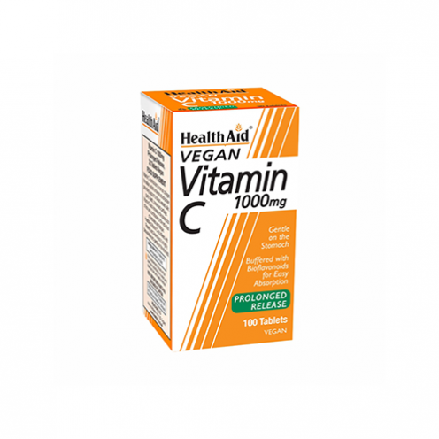 Η Βιταμίνη C 1000mg της HealthAid είναι ρυθμισμένης οξύτητας (buffered) με καρπό αγριοτριανταφυλλιάς και ασερόλα, ρουτίνη και εσπεριδίνη. Η ταμπλέτα είναι βραδείας αποδέσμευσης, απελευθερώνοντας σταδιακά μικρές ποσότητες βιταμίνης C.