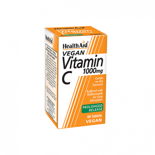 Η Βιταμίνη C 1000mg της HealthAid είναι ρυθμισμένης οξύτητας (buffered) με καρπό αγριοτριανταφυλλιάς και ασερόλα, ρουτίνη και εσπεριδίνη. Η ταμπλέτα είναι βραδείας αποδέσμευσης, απελευθερώνοντας σταδιακά μικρές ποσότητες βιταμίνης C.