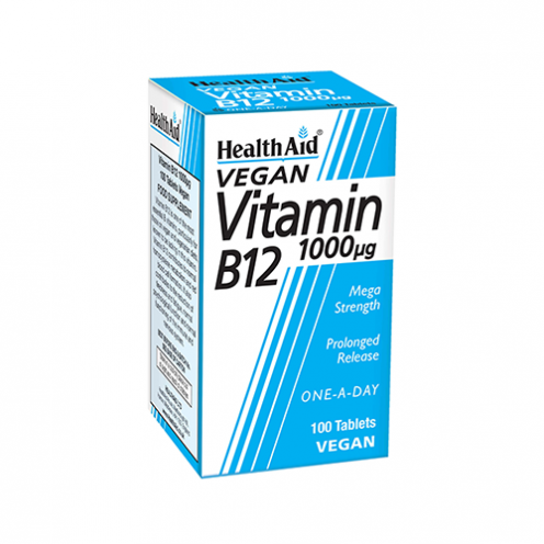 Η Vitamin B12 της HealthAid σε ταμπλέτα βραδείας αποδέσμευσης με τη μορφή κυανοκοβαλαμίνης για καλύτερη απορρόφηση και βιοδιαθεσιμότητα, είναι ιδανική για φυτοφάγους.