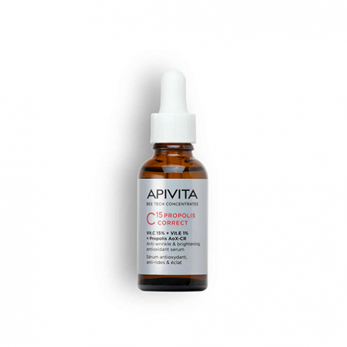 O ΟΡΟΣ C15 PROPOLIS CORRECT αποτελεί έναν ισχυρό συνδυασμό αντιγήρανσης με βιταμίνες C & E και Πατενταρισμένη propolis AoX-CR.