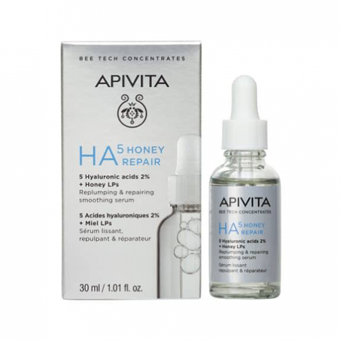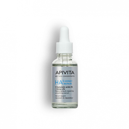 Ο ορός HA5 HONEY REPAIR SERUM αξιοποιεί τον ισχυρό συνδυασμό για "γεμάτη" επιδερμίδα με Υαλουρονικό Οξύ και Μέλι που μειώνει ορατά τις ρυτίδες και χαρίζει σφριγηλότητα.