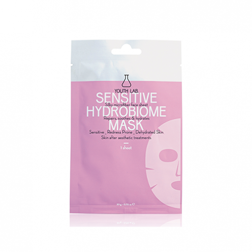Η Sensitive Hydrobiome Mask είναι μία εμποτισμένη υφασμάτινη μάσκα νέας γενιάς που προσφέρει άμεση ανακούφιση στα συμπτώματα ευαισθησίας και στρεσαρισμένου δέρματος, επανορθώνοντας τον φραγμό και ενυδατώνοντας βαθιά την επιδερμίδα.