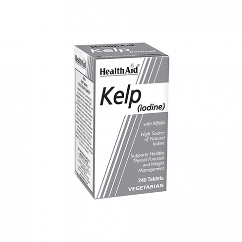 Το Kelp της HealthAid είναι φυτικό συμπλήρωμα διατροφής από φύκια του γένους Laminaria, συλλεγμένα επιλεκτικά από τα πλέον αμόλυντα νερά της Νορβηγίας, μαζί με φύλλα Alfalfa, τα οποία δρουν συνεργιστικά για την καλύτερη διατροφική υποστήριξη. Η τακτική του λήψη συμβάλλει στον εμπλουτισμό της διατροφής με πρωτεΐνες που δυναμώνουν τον οργανισμό και ειδικά σε εφήβους και νέους με κακές διατροφικές συνήθειες. Έχει χρησιμοποιηθεί για την αποτοξίνωση από συγκεκριμένα βαρέα μέταλλα και ραδιενέργεια (περίπτωση Cernobil). Κατάλληλο για άτομα τα οποία ζουν σε ορεινές περιοχές, μακριά από τη θάλασσα.
