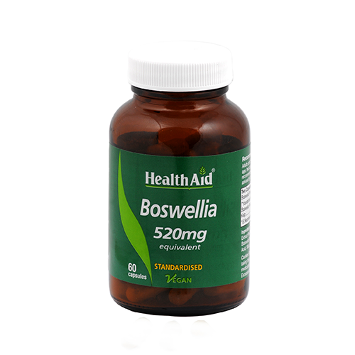 Το Boswellia της HealthAid περιέχει τιτλοδοτημένο εκχύλισμα σκόνης σε 65% boswellic acids, μαζί με τη ρητίνη του φυτού (resin), εμπλουτισμένο με φύκια kelp, με περιεκτικότητα σε ιώδιο, το οποίο συμβάλλει στην παραγωγή ενέργειας, στη φυσιολογική λειτουργία του νευρικού συστήματος και στη γνωσιακή λειτουργία.