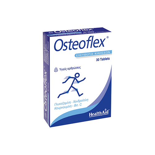 Το Osteoflex της HealthAid σε ταμπλέτες βραδείας αποδέσμευσης, κατάλληλο σε περιπτώσεις διαγνωσμένης οστεοαρθρίτιδας, μετεγχειρητικών καταστάσεων και αθλητικών τραυματισμών σε νέους,  μεσήλικες και ηλικιωμένους.