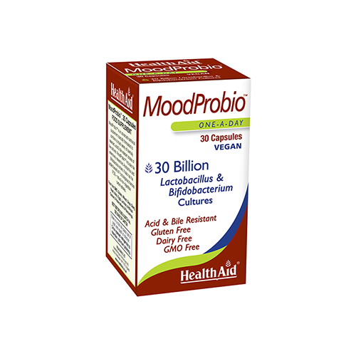 Το MoodProbio της HealthAid αποτελεί συνδυασμό 8 ειδικά μελετημένων προβιοτικών στελεχών, σε ποσότητα 30 δισεκατομμυρίων/κάψουλα, για την ισορροπία της εντερικής χλωρίδας.