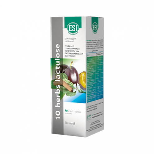Το 10 HERBS LACTULOSE είναι ένα συμπλήρωμα διατροφής με βάση τη Λακτουλόζη και επιπλέον συμπυκνωμένο χυμό δαμάσκηνου και φυτικών εκχυλισμάτων από: ρίζα Αλθαίας (Althaea officinalis L.), καρπό Γαϊδουράγκαθου (Silybum marianum), φύλλα Αγκινάρας (Cynara scolimus), καρπό Ταμάρινδου (Tamarindus indica), ρίζα Ταράξακο (Taraxacum officinale) φύλλα Μαλάχης (Malva sylvestris), φλοιό Κανέλας (Cinnamomum verum), φύλλα Αμαμελίδος (Hamamelis virginiana) και φύλλα Μέντας (Mentha piperita). Η Λακτουλόζη συμβάλλει στην επιτάχυνση του ρυθμού των εντερικών κενώσεων. (τα ευεργετικά αποτελέσματα εξασφαλίζονται με την ημερήσια πρόσληψη 10g λακτουλόζης.) Ο συμπυκνωμένος χυμός του δαμάσκηνου, ο καρπός Ταμάρινδος, η ρίζα Αλθαίας, η ρίζα Ταράξακο, ο φλοιός Κανέλας και τα φύλλα Αμαμελίδος διευκολύνουν την τακτικότητα των εντερικών κενώσεων. Ο καρπός Ταμάρινδος και η ρίζα Αλθαίας βοηθούν στη συχνότητα και τον όγκο των κενώσεων. Η ρίζα Αλθαίας βοηθά στην εντερική διέλευση και έχει καταπραϋντική επίδραση στα έντερα. Ο καρπός του Γαϊδουράγκαθου, τα φύλλα Αγκινάρας και η ρίζα Ταράξακο υποστηρίζουν την ηπατική και την πεπτική λειτουργία και συμβάλλουν στην αποτοξίνωση. Επίσης τα φύλλα Αγκινάρας, ο φλοιός Κανέλας και τα φύλλα Μέντας, μειώνουν τα εντερικά αέρια. Επιπλέον τα φύλλα Μέντας και ο φλοιός Κανέλας συμβάλλουν στη σωστή εντερική κινητικότητα και έχουν χωνευτικές ιδιότητες.