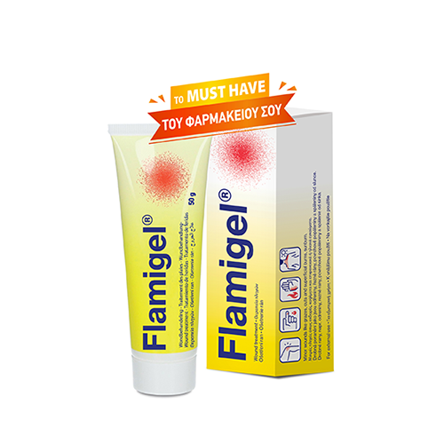 Το Flamigel® είναι μια μοναδικής σύνθεσης υδροενεργή κολλοειδής γέλη, (διεθνώς αναγνωρισμένη), εμπλουτισμένη με αργινίνη για την θεραπεία εγκαυμάτων και μικρών πληγών. Ενυδατώνει ή απορροφά την υγρασία της πληγής προσαρμόζοντας τη δράση του ανάλογα με το είδος του εγκαύματος ή του τραύματος.