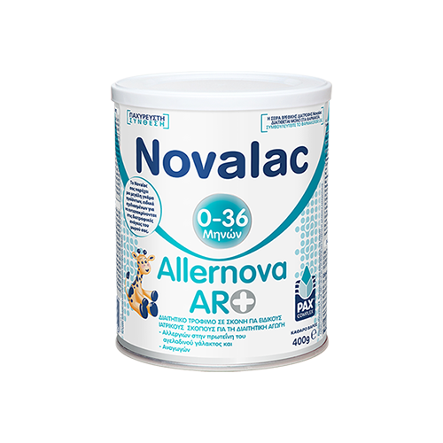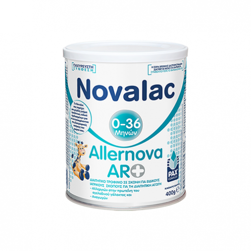 Το Novalac Allernova AR+ είναι ένα τρόφιμο σε σκόνη ειδικά σχεδιασμένο για την αντιμετώπιση των συμπτωμάτων που συνδέονται με διαπιστωμένη αλλεργία στη πρωτεΐνη του αγελαδινού γάλακτος.
