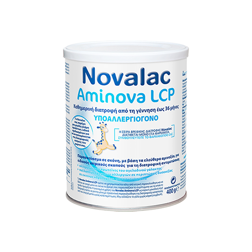 Το Novalac Aminova LCP είναι ένα παρασκεύασμα σε σκόνη με βάση τα ελεύθερα αμινοξέα, για ειδικούς ιατρικούς σκοπούς, για τη διατροφική αντιμετώπιση αλλεργιών στις πρωτεΐνες του αγελαδινού γάλακτος και πολλαπλών τροφικών αλλεργιών σε περιπτώσεις δυσανεξίας σε εκτενώς υδρολυμένα παρασκευάσματα.