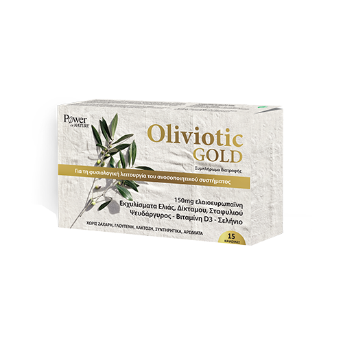 Ενεργά συστατικά ανά κάψουλα: Εκχύλισμα φύλλων ελιάς 250mg (100mg ελαιοευρωπαΐνη), εκχύλισμα φύλλων ελιάς (Olivactive®) 250mg (50mg ελαιοευρωπαΐνη), εκχύλισμα GOLD* 100mg από φύλλα ελιάς, δίκταμο, καρπούς σταφυλιού, ψευδάργυρος 5mg (50% Σ.Η.Δ.**), σελήνιο 15μg (27% Σ.Η.Δ.**), βιταμίνη D3 6,25μg (250IU) (125% Σ.Η.Δ.**).