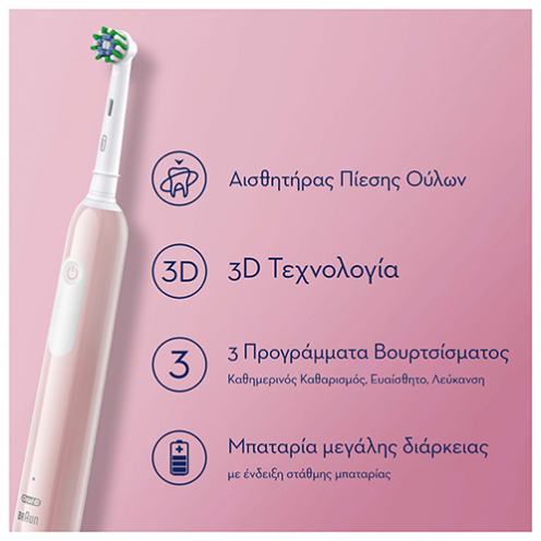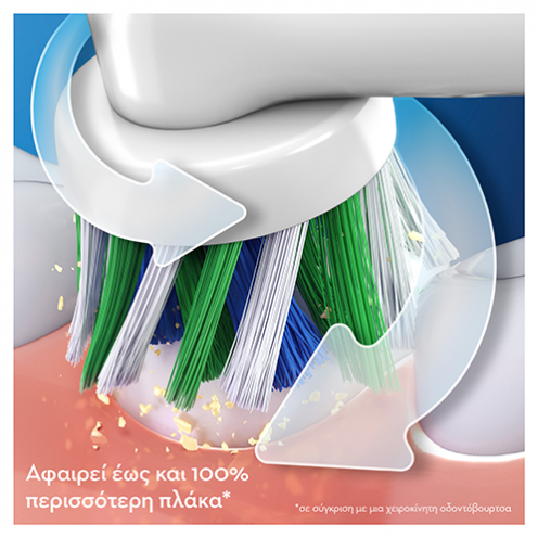 - Η μοναδική 3D τεχνολογία καθαρισμού της Oral-B: ταλαντεύεται, περιστρέφεται και πάλλεται για έως και 100% περισσότερη αφαίρεση της πλάκας ακόμα και σε δυσπρόσιτες περιοχές σε σχέση με μια χειροκίνητη οδοντόβουρτσα