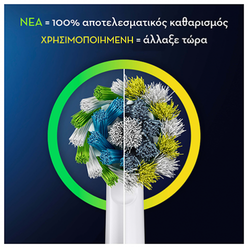 - Οι ίνες της Oral-B κεφαλής βουρτσίσματος αλλάζουν χρώμα από πράσινο σε κίτρινο ανάλογα με την προσωπική χρήση, υποδεικνύοντας πότε είναι η ώρα να την αλλάξεις, για 100% αποτελεσματικό καθαρισμό