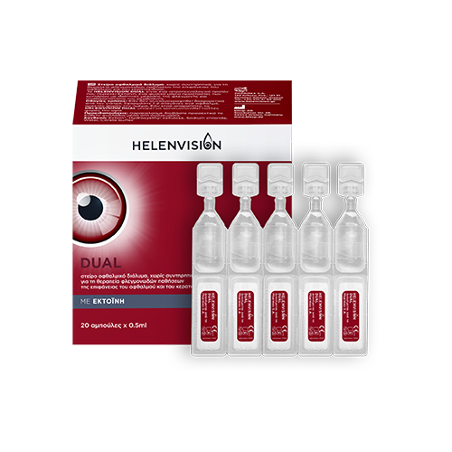 Το HELENVISION DUAL είναι ένα ιατροτεχνολογικό προϊόν που περιέχει Εκτοΐνη, ένα φυσικό μόριο προστασίας των κυττάρων με ιδιότητες μείωσης της φλεγμονής και σταθεροποίησης της μεμβράνης.