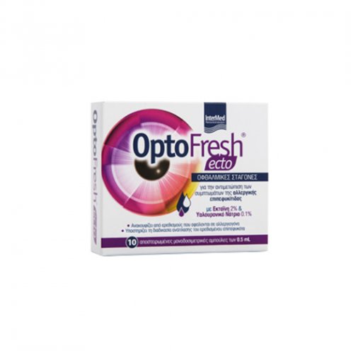 Το OptoFresh ecto είναι στείρο οφθαλμικό διάλυμα, βασισμένο στην εκτοΐνη, το υαλουρονικό νάτριο και την πανθενόλη. Ο μοναδικός συνδυασμός του έχει θετική επίδραση στην αντιμετώπιση των συμπτωμάτων της αλλεργικής επιπεφυκίτιδας καθώς δημιουργεί ένα προστατευτικό φιλμ, το οποίο δρα ως ασπίδα απέναντι στα αλλεργιογόνα και τις ευαισθησίες που αυτά προκαλούν, ενισχύοντας παράλληλα την ενυδάτωση της επιφάνειας του οφθαλμού.