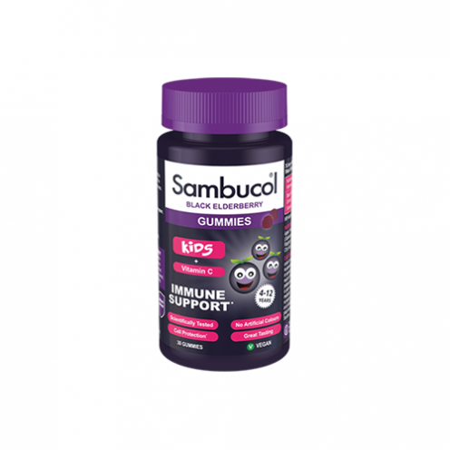 Το Sambucol® Kids είναι ένα συμπλήρωμα διατροφής ειδικά σχεδιασμένο για την ενίσχυση του ανοσοποιητικού των παιδιών, ηλικίας 4-12 ετών, με εκχύλισμα Σαμπούκου και βιταμίνη C. Το Sambucol® Kids Gummies (ζελεδάκια) περιέχει ένα μοναδικό συμπύκνωμα από τους καρπούς του φυτού Σαμπούκος ο Μελανός (Black Elderberry) και είναι εμπλουτισμένο με βιταμίνη C, για την υποστήριξη και τη φυσιολογική λειτουργία του ανοσοποιητικού συστήματος των παιδιών, ειδικά σε περιπτώσεις γρίπης και κοινού κρυολογήματος. Είναι ιδιαίτερα πλούσιο σε φυσικά αντιοξειδωτικά, τα οποία προσδίδουν στο Sambucol® Kids ισχυρή αντιοξειδωτική δράση. Τα φλαβονοειδή και οι ανθοκυανίνες που περιέχονται είναι μεταξύ των πλέον ισχυρών φυσικών αντιοξειδωτικών που υπάρχουν και αποτελούν έναν ιδανικό σύμμαχο του ανοσοποιητικού.