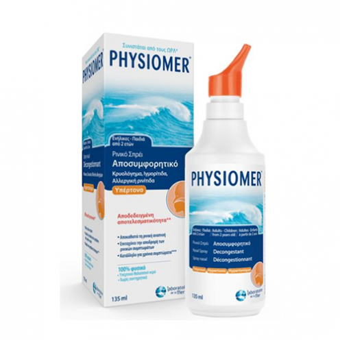 Το Physiomer Υπέρτονο είναι ένα φυσικό ρινικό αποσυμφορητικό που συμβάλλει στον αποτελεσματικό καθαρισμό των ρινικών οδών και στην αποκατάσταση της αναπνοής. Δεν προκαλεί εξάρτηση και είναι μία αποτελεσματική εναλλακτική έναντι των φαρμακευτικών αποσυμφορητικών σκευασμάτων για την ανακούφιση της ρινικής συμφόρησης.