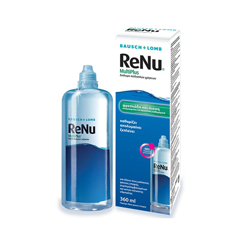 Το διάλυμα για φακούς επαφής BAUSCH & LOMB ReNu MultiPlus εξασφαλίζει διαρκή άνεση καθ’ όλη την διάρκεια της ημέρας. Για χρήστες που εμφανίζουν συμπτώματα αίσθησης ξηρότητας. Καθαρίζει, απολυμαίνει, ξεπλένει. Ιδανικό για όλους τους μαλακούς φακούς επαφής, συμπεριλαμβανομένων και αυτών σιλικόνης υδρογέλης.